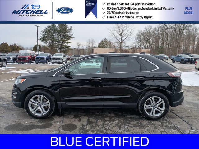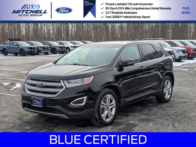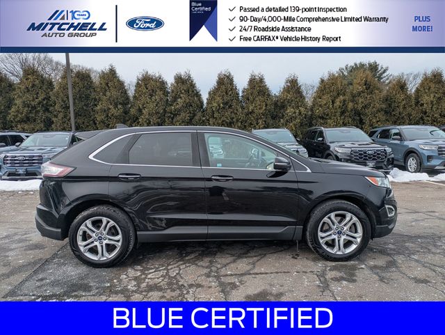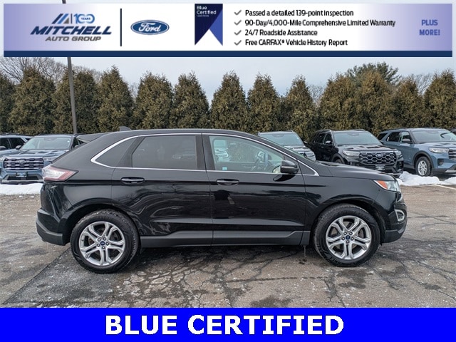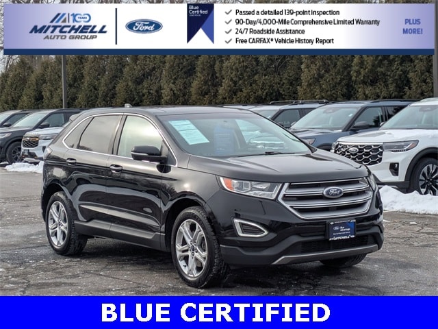 Ford Blue Certified Certified, AWD, ** - BLUE CERTIFIED PRE-OWNED FORD EDGE TITANIUM AWD !!! --- PART OF THE FORD BLUE ADVANTAGE PROGRAM!! - LOCATED AT MITCHELL SELIG FORD IN WINDSOR, CT AT 801 BLOOMFIELD AVE --- RIGHT OFF EXIT 37 VIA ROUTE 91 !!! -- CONTACT US TODAY AT 860-688-3651 OR ONLINE AT MitchellSeligFord.com !!!, *** --- BRAND NEW FRONT BRAKES INCLUDING NEW FRONT BRAKE ROTORS & NEW FRONT BRAKE PADS !!!, 110V/150W AC Power Outlet, 12 Speakers, Alloy wheels, AM/FM radio: SiriusXM, AM/FM Stereo w/Single CD Player, Apple CarPlay/Android Auto, Automatic temperature control, Equipment Group 301A, Exterior Parking Camera Rear, Front dual zone A/C, Heated door mirrors, Heated front seats, Heated Rear-Seats, Leather Trimmed Heated/Cooled Bucket Seats, Memory seat, Panoramic Vista Roof, Power door mirrors, Power driver seat, Power Liftgate, Power passenger seat, Power Tilt/Telescoping Steering Column w/Memory, Power windows, Premium audio system: Sony, Rear Parking Sensors, Remote Start System, SiriusXM Radio, Speed-Sensitive Wipers, SYNC 3 Communications & Entertainment System, Voice-Activated Touchscreen Navigation System, Wheels: 19" Nickel-Painted Aluminum.