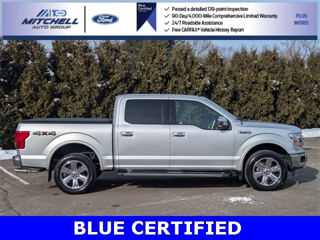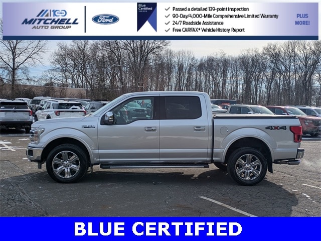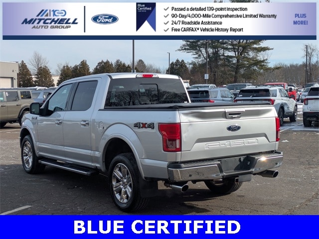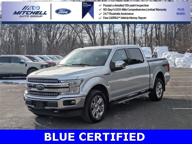 Ford Blue Certified Certified, 4WD, ** - BLUE CERTIFIED PRE-OWNED FORD F-150 LARIAT !!! --- PART OF THE FORD BLUE ADVANTAGE PROGRAM!! - LOCATED AT MITCHELL SELIG FORD IN WINDSOR, CT AT 801 BLOOMFIELD AVE --- RIGHT OFF EXIT 37 VIA ROUTE 91 !!! -- CONTACT US TODAY AT 860-688-3651 OR ONLINE AT MitchellSeligFord.com !!!, ***--- BRAND NEW REAR BRAKES INCLUDING NEW REAR BRAKE ROTORS & NEW REAR BRAKE PADS !!!, 110V/400W Outlet, 2nd Row Heated Seats, Active Park Assist, Alloy wheels, AppLink/Apple CarPlay and Android Auto, Auto High-beam Headlights, Automatic temperature control, BLIS Blind Spot Information System, Class IV Trailer Hitch Receiver, Electronic Locking w/3.55 Axle Ratio, Engine Oil Cooler, Equipment Group 502A Luxury, Exterior Parking Camera Rear, Front dual zone A/C, Front fog lights, GVWR: 7,000 lbs Payload Package, Heated door mirrors, Heated front seats, Heated Steering Wheel, Lane-Keeping System, Lariat Chrome Appearance Package, Leather-Trimmed 40/20/40 Front Seat, Leather-Trimmed Bucket Seats, LED Sideview Mirror Spotlights, Memory seat, Navigation System, Pedal memory, Power door mirrors, Power driver seat, Power Glass Sideview Mirr w/Chrome Skull Caps, Power passenger seat, Power Tilt/Telescoping Steering Column w/Memory, Power windows, Pro Trailer Backup Assist, Quad Beam LED Headlamps & LED Taillamps/Fog Lamps, Radio: B&O Sound System by Bang & Olufsen, Rain-Sensing Wipers, Remote Start System w/Remote Tailgate Release, Reverse Sensing System, SiriusXM Radio, SYNC 3, Tailgate Step w/Tailgate Lift Assist, Technology Package, Tough Bed Spray-In Bedliner, Trailer Tow Package, Twin Panel Moonroof, Universal Garage Door Opener, Upgraded Front Stabilizer Bar, Ventilated front seats, Voice-Activated Touchscreen Navigation, Wheels: 20" Chrome-Like PVD, Windshield Wiper De-Icer.