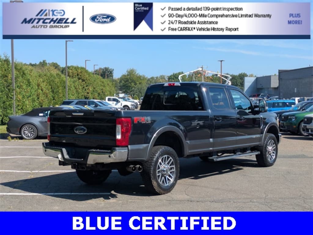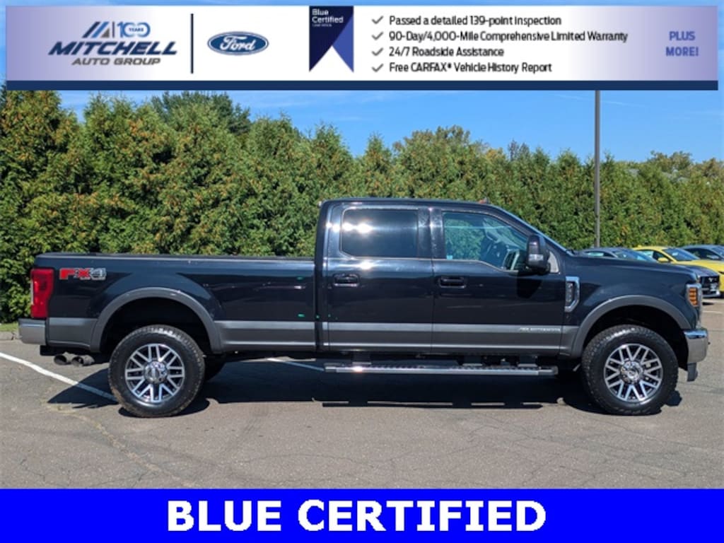 Ford Blue Certified Certified, 4WD, ** - BLUE CERTIFIED PRE-OWNED FORD F-350 LARIAT SUPER DUTY !!! --- PART OF THE FORD BLUE ADVANTAGE PROGRAM!! - LOCATED AT MITCHELL SELIG FORD IN WINDSOR, CT AT 801 BLOOMFIELD AVE --- RIGHT OFF EXIT 37 VIA ROUTE 91 !!! -- CONTACT US TODAY AT 860-688-3651 OR ONLINE AT MitchellSeligFord.com !!!, *** -- BRAND NEW SET OF ALL 4 TIRES !!!, *** -- BRAND NEW REAR BRAKES INCLUDING NEW REAR BRAKE ROTORS & NEW REAR BRAKE PADS !!!, 110V/400W Outlet, Adjustable pedals, Alloy wheels, AppLink/Apple CarPlay and Android Auto, Automatic temperature control, Dual Alternators (Total 332-Amps), Easy Entry®/Exit Memory Driver's Seat Feature, Electronic-Locking w/3.55 Axle Ratio, Engine Block Heater, Exterior Parking Camera Rear, Flow-Through Console, Front & Rear Wheel Well Liners (Pre-Installed), Front dual zone A/C, Front fog lights, Front Leather Seating Surfaces 40/Console/40, FX4 Off-Road Package, GVWR: 11,500 lb Payload Package, Heated door mirrors, Hill Descent Control, Lariat Value Package, LED Box Lighting, LED Roof Clearance Lights, Memory Power-Adjustable Pedals, Navigation System, Off-Road Specifically Tuned Shock Absorbers, Order Code 618A, Power door mirrors, Power driver seat, Power Heated/Cooled Driver Seat w/Memory, Power Heated/Cooled Passenger Seat, Power passenger seat, Power windows, PowerScope Trailer Tow Mirrors w/Memory, Radio: B&O Sound System by Bang & Olufsen, Rear CHMSL Camera, Rear Parking Sensors, Remote Start System, SiriusXM Radio, Snow Plow Prep Package, SYNC 3 Communications & Entertainment System, Tailgate Step & Handle, Tough Bed Spray-In Bedliner, Ultimate Trailer Tow Camera System, Unique FX4 Off-Road Box Decal, Upfitter Switches (6), Voice-Activated Navigation, Wheels: 20" Bright Machined Cast Aluminum.