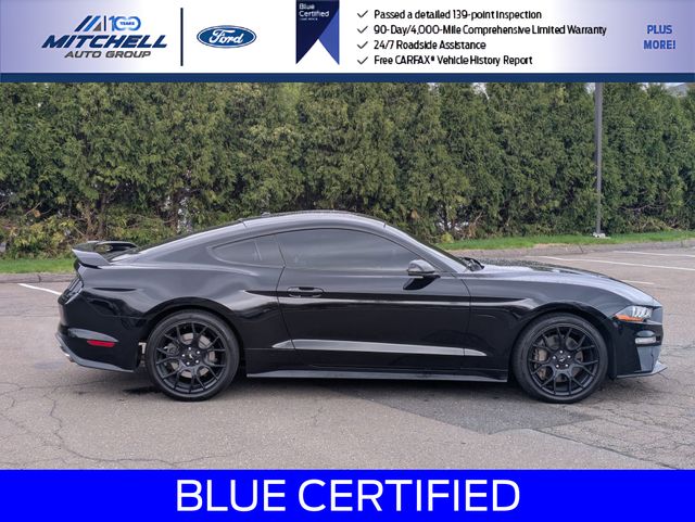 Ford Blue Certified Certified, ** - BLUE CERTIFIED PRE-OWNED FORD MUSTANG ECOBOOST PREMIUM W/ ECOBOOST PERFORMANCE PACKAGE !!! --- PART OF THE FORD BLUE ADVANTAGE PROGRAM!! - LOCATED AT MITCHELL SELIG FORD IN WINDSOR, CT AT 801 BLOOMFIELD AVE --- RIGHT OFF EXIT 37 VIA ROUTE 91 !!! -- CONTACT US TODAY AT 860-688-3651 OR ONLINE AT MitchellSeligFord.com !!!, *** -- BRAND NEW REAR BRAKE ROTORS !!!, 12" LCD Digital Instrument Cluster w/MyColor, 3.55 TORSEN Limited Slip Rear-Axle, Active Valve Performance Exhaust, Alloy wheels, AM/FM radio: SiriusXM, AppLink/Apple CarPlay and Android Auto, Automatic temperature control, Blind Spot Info System w/Cross-Traffic Alert, Climate Controlled Heated/Cooled Front Seats, EcoBoost Performance Package, Engine Spun Aluminum Instrument Panel, Equipment Group 201A, Exterior Parking Camera Rear, FordPass Connect, Front dual zone A/C, Front fog lights, Gauge Pack (Oil Pressure & Boost), HD Front Springs, Heated door mirrors, Heated front seats, Heated Steering Wheel, Larger Brake Rotors, Larger Radiator, Leather Bucket Seats, Leather Bucket Seats w/Color Accents, Linked Graphite Aluminum Instrument Panel, Memory Driver Seat, Mirrors & Ambient Lighting, Navigation System, Power door mirrors, Power driver seat, Power passenger seat, Power windows, Premium Plus Package, SiriusXM Radio, Speed-Sensitive Wipers, SYNC 3 Communications & Entertainment System, Ventilated front seats, Voice-Activated Touch-Screen Navigation System, Wheels: 19" x 9" Ebony Black-Painted Aluminum.