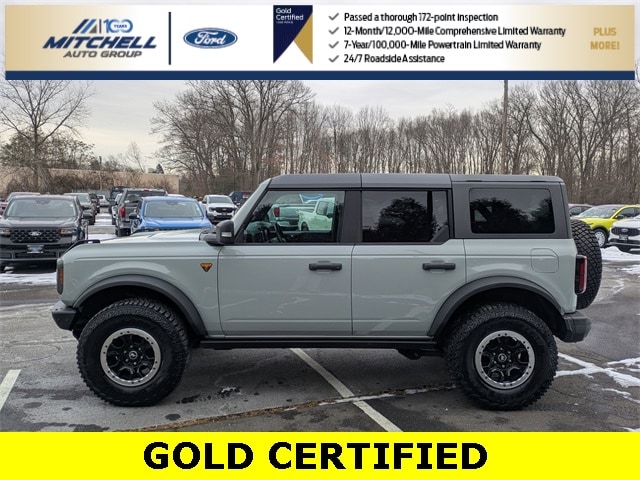 Ford Gold Certified Certified, ** - GOLD CERTIFIED PRE-OWNED FORD BRONCO BADLANDS !!! --- PART OF THE FORD BLUE ADVANTAGE PROGRAM!! - LOCATED AT MITCHELL SELIG FORD IN WINDSOR, CT AT 801 BLOOMFIELD AVE --- RIGHT OFF EXIT 37 VIA ROUTE 91 !!! -- CONTACT US AT 860-688-3651 OR ONLINE AT MitchellSeligFord.com !!!, *** - BRAND NEW SET OF ALL 4 TIRES !!!, **** --- BRAND NEW FRONT BRAKES INCLUDING NEW FRONT BRAKE ROTORS & NEW FRONT BRAKE PADS !!!, *** --- BRAND NEW REAR BRAKES INCLUDING NEW REAR BRAKE ROTORS & NEW REAR BRAKE PADS !!!, 12" LCD Capacitive Touchscreen w/Swipe Capability, 2 Smart Charging USB Ports In Dashboard, 2-Door Intelligent Access w/Lock/Unlock, 360-Degree Camera, 4.7 Final Drive Ratio, Adaptive Cruise Control, Additional Sound Deadening, Alloy wheels, AM/FM radio: SiriusXM with 360L, Ambient Footwell Lighting, Auto High-Beam Headlamps, Auto High-beam Headlights, Auto-Dimming Interior Rear-View Mirror, BLIS Blind Spot Information System, Connected Built-In Navigation, Dr & Pass Illuminated Sliding Visor Vanity Mirrors, Dual-Zone Electronic Automatic Temperature Control, Enhanced Voice Recognition, Equipment Group 334A Lux Package, Evasive Steering Assist, Exterior Parking Camera Rear, Forward Sensing System, Front Row Heated Seats, Front Row Top Panels Storage Bag, Hard Top Sound Deadening Headliner, Heated door mirrors, Heated Steering Wheel, High Clearance Fender Flares, High Clearance Suspension, Information on Demand Panel, Lane-Keeping System, Marine Grade Vinyl Bucket Seats, Molded-In-Color Hard Top, Navigation system: Connected Navigation, Position-Sensitive Bilstein Shock Absorbers, Power door mirrors, Power Outlet - Back Side of Center Floor Console, Power windows, Pre-Collision Assist w/Automatic Emergency Braking, Radio: B&O Sound System by Bang & Olufsen, Rear-View Camera, Rear-Window Defroster & Washer, Reverse Sensing System, Sasquatch Package, Sideview Mirrors, SiriusXM Radio w/360L, SYNC 4, Towing Capability, Universal Garage Door Opener, Wheels: 17" Black High Gloss-Painted Aluminum, Wireless Charging Pad.