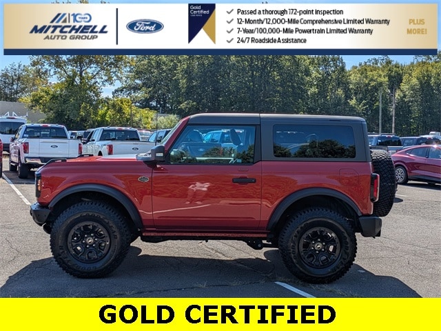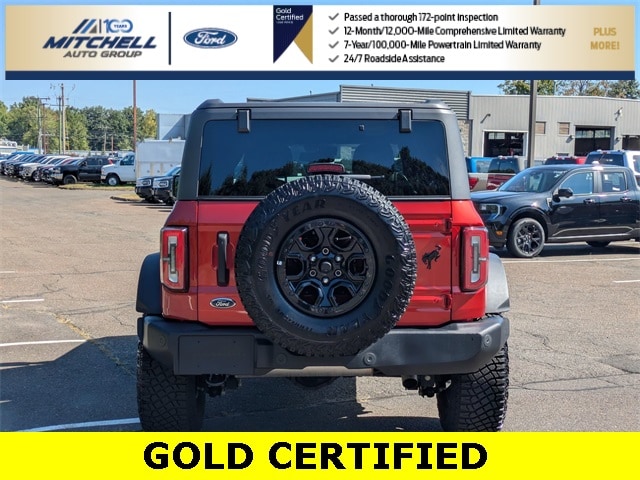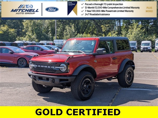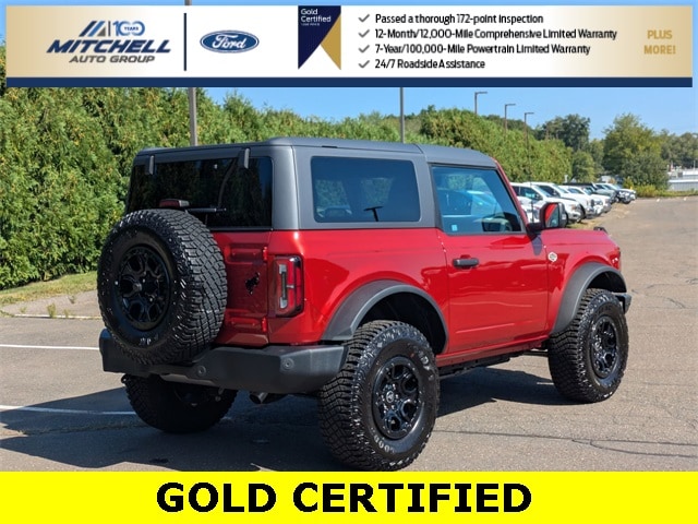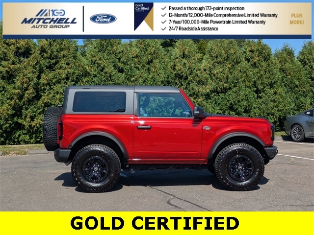 Ford Gold Certified Certified, ** - GOLD CERTIFIED PRE-OWNED FORD BRONCO WILDTRAK !!! --- PART OF THE FORD BLUE ADVANTAGE PROGRAM!! - LOCATED AT MITCHELL SELIG FORD IN WINDSOR, CT AT 801 BLOOMFIELD AVE --- RIGHT OFF EXIT 37 VIA ROUTE 91 !!! -- CONTACT US AT 860-688-3651 OR ONLINE AT MitchellSeligFord.com !!!, *** - MINT CONDITION !!!, 12" LCD Capacitive Touchscreen w/Swipe Capability, 2 Smart Charging USB Ports In Dashboard, 360-Degree Camera, Adaptive Cruise Control, Additional Sound Deadening, Alloy wheels, AM/FM radio: SiriusXM with 360L, Auto High-beam Headlights, Automatic temperature control, Connected Navigation, Convertible HardTop, Convertible roof lining, Equipment Group 354A Lux Package, Evasive Steering Assist, Exterior Parking Camera Rear, Ford Performance Heavy-Duty Modular Front Bumper, Front dual zone A/C, Front fog lights, Front Parking Sensors, Fully automatic headlights, Heated door mirrors, Heated front seats, Heated Leather-Trimmed/Vinyl Bucket Seats, Heated Steering Wheel, Information on Demand Panel, Keyless Entry Keypad, Navigation system: Connected Navigation, Power door mirrors, Power windows, Radio: B&O Sound System by Bang & Olufsen, Sideview Mirrors, SiriusXM Radio w/360L, SYNC 4, Universal Garage Door Opener, Wheels: 17" Black High Gloss-Painted Aluminum, Wireless Charging Pad.