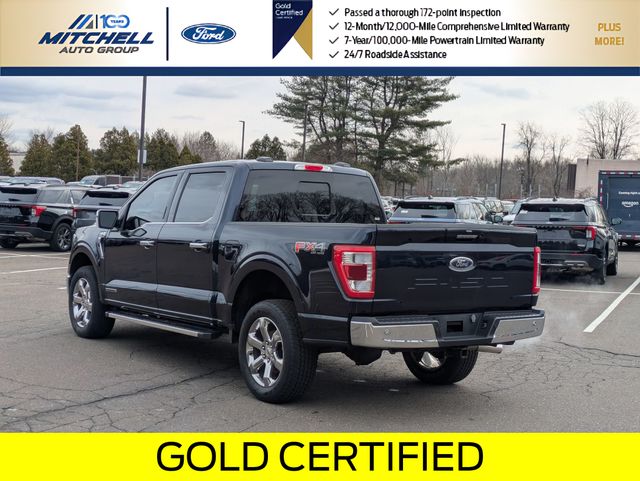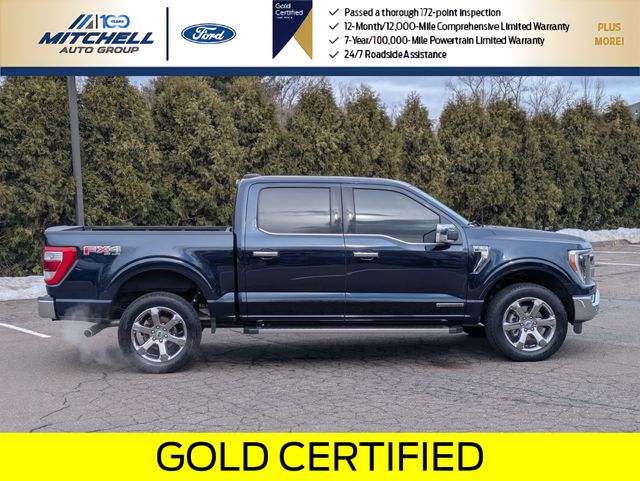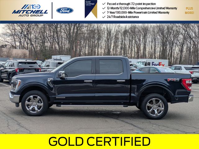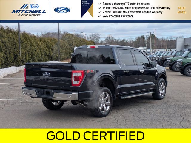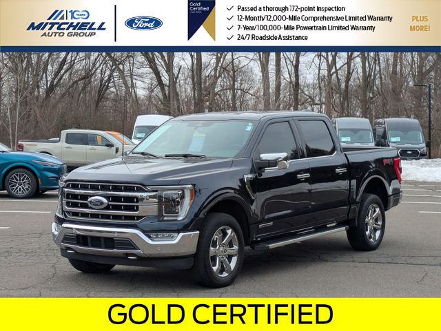 Ford Gold Certified Certified, 3.5L PowerBoost Full-Hybrid V6, 4WD, ** - GOLD CERTIFIED PRE-OWNED FORD F-150 LARIAT !!! --- PART OF THE FORD BLUE ADVANTAGE PROGRAM!! - LOCATED AT MITCHELL SELIG FORD IN WINDSOR, CT AT 801 BLOOMFIELD AVE --- RIGHT OFF EXIT 37 VIA ROUTE 91 !!! -- CONTACT US AT 860-688-3651 OR ONLINE AT MitchellSeligFord.com !!!, 2nd Row Heated Seats, 4x4 FX4 Off-Road Bodyside Decal, Adjustable pedals, Alloy wheels, AM/FM radio: SiriusXM with 360L, Auto High-beam Headlights, Automatic temperature control, Chrome wheels, Class IV Trailer Hitch Receiver, Connected Built-In Navigation, Electronic Locking w/3.73 Axle Ratio, Equipment Group 502A High, Evasive Steering Assist, Exterior Parking Camera Rear, Ford Co-Pilot360 Assist 2.0, Front dual zone A/C, Front fog lights, FX4 Off-Road Package, Garage door transmitter, GVWR: 7,350 lbs Payload Package, Heated door mirrors, Heated front seats, Hill Descent Control, Leather-Trimmed Bucket Seats, LED Projector w/Dynamic Bending Headlamps, Memory seat, Monotube Rear Shocks, Off-Road Tuned Front Shock Absorbers, Partitioned Lockable Fold-Flat Storage, Pedal memory, Power door mirrors, Power driver seat, Power passenger seat, Power Tilt/Telescoping Steering Column w/Memory, Power windows, Radio: B&O Unleashed Sound System by Bang & Olufsen, Rain-Sensing Wipers, Rock Crawl Mode, SYNC 4 w/Enhanced Voice Recognition, Tough Bed Spray-In Bedliner, Ventilated front seats, Wheel Well Liner, Wheels: 20" Chrome-Like PVD, Wireless Charging Pad.