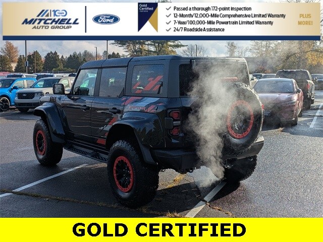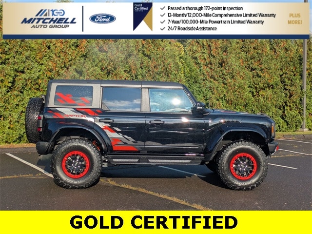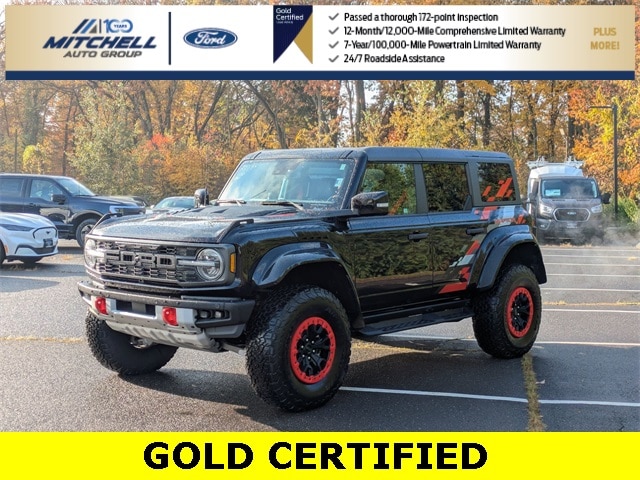 Ford Gold Certified Certified, ** - GOLD CERTIFIED PRE-OWNED FORD BRONCO RAPTOR !!! --- PART OF THE FORD BLUE ADVANTAGE PROGRAM!! - LOCATED AT MITCHELL SELIG FORD IN WINDSOR, CT AT 801 BLOOMFIELD AVE --- RIGHT OFF EXIT 37 VIA ROUTE 91 !!! -- CONTACT US AT 860-688-3651 OR ONLINE AT MitchellSeligFord.com !!!, Alloy wheels, Auto High-beam Headlights, Automatic temperature control, Body-Color Painted Sideview Mirror Caps, Code Orange Accent Seat Belts, Connected Navigation, Convertible HardTop, Convertible roof lining, Equipment Group 374A High/Lux Package, Exterior Parking Camera Rear, Front dual zone A/C, Front fog lights, Hard Top Sound Deadening Headliner, Heated door mirrors, Heated front seats, Heated steering wheel, Interior Carbon Fiber Pack 6, Leather-Trimmed/Vinyl Bucket Seats w/Blue/Black, Marine Grade Vinyl Bucket Seats, Navigation system: Connected Navigation, Power door mirrors, Power windows, Radio: B&O Sound System by Bang & Olufsen, Raptor Code Orange Appearance Package, SiriusXM Radio w/360L, SYNC 4, Wheels: 17" Dark Carbonized Gray Alloy Painted.