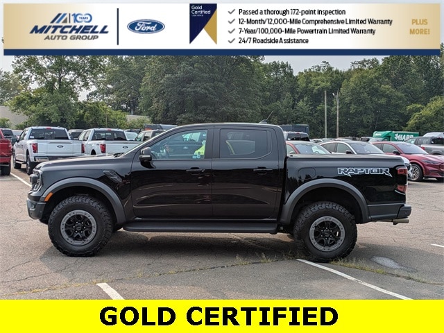 Ford Gold Certified Certified, 4WD, ** - GOLD CERTIFIED PRE-OWNED FORD RANGER RAPTOR !!! --- PART OF THE FORD BLUE ADVANTAGE PROGRAM!! - LOCATED AT MITCHELL SELIG FORD IN WINDSOR, CT AT 801 BLOOMFIELD AVE --- RIGHT OFF EXIT 37 VIA ROUTE 91 !!! -- CONTACT US AT 860-688-3651 OR ONLINE AT MitchellSeligFord.com !!!, Alloy wheels, Automatic temperature control, Electronic Stability Control, Equipment Group 800A Standard, Exterior Parking Camera Rear, Front dual zone A/C, Front fog lights, Heated door mirrors, Heated front seats, Heated steering wheel, Leather-Trimmed Front Heated Bucket Seats, Memory seat, Navigation system: Connected Navigation, Power door mirrors, Power driver seat, Power passenger seat, Power windows, Radio: B&O Sound System by Bang & Olufsen, Rain sensing wipers, SiriusXM Satellite Radio, Speed-sensing steering, SYNC 4A w/Connected Built-In Navigation, Wheels: 17" Forged Beadlock Capable.