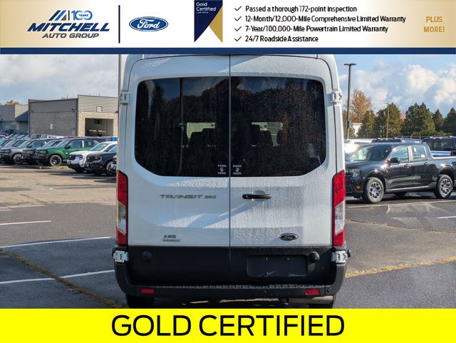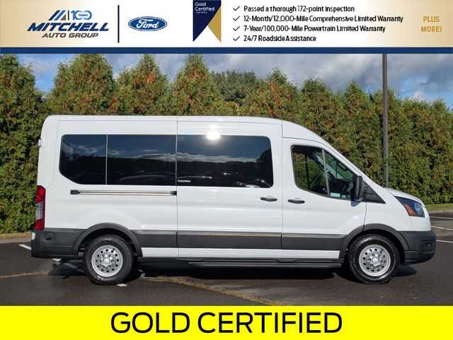 Ford Gold Certified Certified, ** - GOLD CERTIFIED PRE-OWNED FORD TRANSIT AWD MEDIUM ROOF PASSENGER VAN !!! --- PART OF THE FORD BLUE ADVANTAGE PROGRAM!! - LOCATED AT MITCHELL SELIG FORD IN WINDSOR, CT AT 801 BLOOMFIELD AVE --- RIGHT OFF EXIT 37 VIA ROUTE 91 !!! -- CONTACT US AT 860-688-3651 OR ONLINE AT MitchellSeligFord.com !!!, *** --- BRAND NEW SET OF ALL 4 TIRES !!!, *** -- BRAND NEW FRONT BRAKES INCLUDING NEW FRONT BRAKE ROTORS & NEW FRONT BRAKE PADS !!!, 3.73 Limited-Slip Axle Ratio, Auto High-beam Headlights, Dark Palazzo Gray Vinyl Bucket Seats, Electronic Air Temperature Control, Extended Length Running Boards, Exterior Parking Camera Rear, Front Fog Lamps, Front Sensing System, Large Center Console, Order Code 301A, Power door mirrors, Power windows, Privacy Glass, Radio: AM/FM Stereo w/SYNC 4 & Nav, Rain sensing wipers, Rear-Window Defroster, Reverse Sensing System, Side Sensing System, SYNC 3 Communications & Entertainment System, Wheels: 16" Silver Steel w/Exposed Lug Nuts.