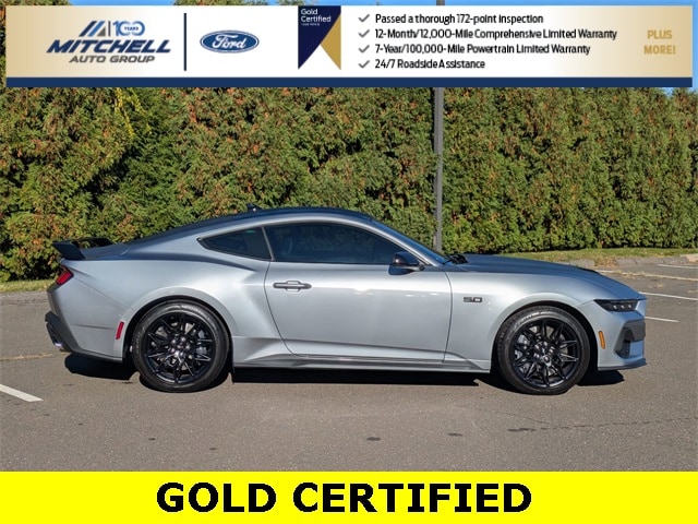 Ford Gold Certified Certified, ** - GOLD CERTIFIED PRE-OWNED FORD MUSTANG GT PREMIUM W/ GT PERFORMANCE PACKAGE !!! --- PART OF THE FORD BLUE ADVANTAGE PROGRAM!! - LOCATED AT MITCHELL SELIG FORD IN WINDSOR, CT AT 801 BLOOMFIELD AVE --- RIGHT OFF EXIT 37 VIA ROUTE 91 !!! -- CONTACT US AT 860-688-3651 OR ONLINE AT MitchellSeligFord.com !!!, 3.55 TORSEN Limited Slip Rear Axle, Active Valve Performance Exhaust, Alloy wheels, AM/FM radio: SiriusXM with 360L, Auto High-beam Headlights, Automatic temperature control, B&O Sound System by Bang & Olufsen w/12 Speakers, Black Brake Calipers w/White Logo, Black GT Pony Badges, Black Mirror Caps, Black Painted Strut-Tower Brace, Brembo Brake System, Brembo Brake System w/Performance Linings, Climate Controlled Heated/Cooled Front Seats, Connected Navigation, Ebony Black Grille, Electric Hand-Operated Parking Brake (Drift Brake), Equipment Group 400A Standard Package, Exterior Parking Camera Rear, Ford Co-Pilot360 Assist+, Front dual zone A/C, Front Towing Hooks, GT Performance Package, HD Radio, Headlamps w/Black Bezels, Heated door mirrors, Heated front seats, Heated steering wheel, Heavy-Duty Front Springs, Leather steering wheel, Leather-Trimmed Bucket Seats, Mustang Nite Pony Package, Painted Black Roof, Power door mirrors, Power driver seat, Power passenger seat, Power windows, Pre-Collision Assist w/Automatic Emergency Braking, Rain sensing wipers, Rear Parking Sensors, SiriusXM w/360L, SYNC 4, Unique Chassis Tuning, Unique Stability Control, Upsized Rear Sway Bars, Ventilated front seats, Wheels: 19" x 9" Fr/19" x 9.5" Rr Carbonized.