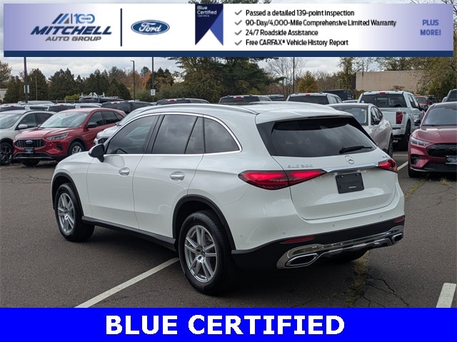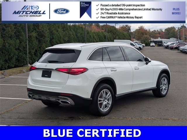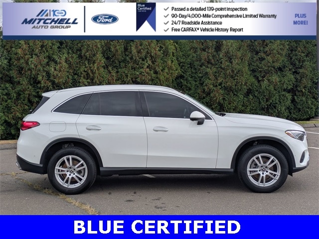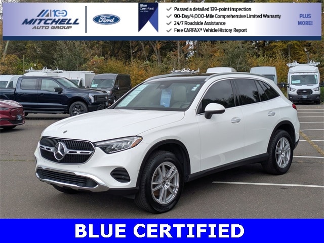 Blue Certified Certified, ** - BLUE CERTIFIED PRE-OWNED MERCEDES-BENZ GLC 300!!! --- PART OF THE FORD BLUE ADVANTAGE PROGRAM!! - LOCATED AT MITCHELL SELIG FORD IN WINDSOR, CT AT 801 BLOOMFIELD AVE --- RIGHT OFF EXIT 37 VIA ROUTE 91 !!! -- CONTACT US TODAY AT 860-688-3651 OR ONLINE AT MitchellSeligFord.com !!!, 11.9" Center Touchscreen Display, 16-Way Power Front Seats w/Memory/Lumbar/Thigh Ext, 18" 5-Twin Spoke Wheels, 3 USB C-Ports, 4-Way Power Lumbar Support, Alloy wheels, Apple CarPlay®/Android Auto®, Auto High-beam Headlights, Automatic temperature control, Exterior Parking Camera Rear, Front dual zone A/C, Fully automatic headlights, Genuine wood dashboard insert, Head restraints memory, Heated door mirrors, Heated Front Bucket Seats, Heated front seats, Heated Steering Wheel, Leather steering wheel, MB-Tex Dashboard w/Nappa Look, MB-Tex Upholstery, Memory seat, Panorama Sunroof, Power door mirrors, Power driver seat, Power Liftgate, Power passenger seat, Power windows, Rain sensing wipers, Rear fog lights, Wireless Apple CarPlay®.