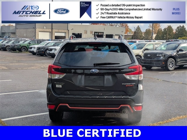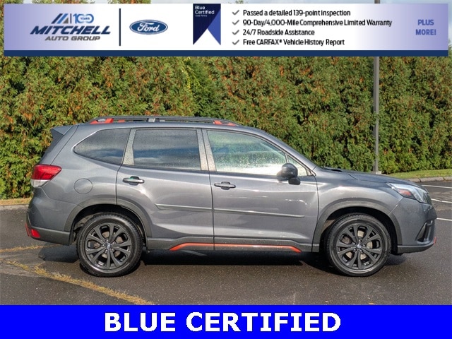 Blue Certified Certified, ** - BLUE CERTIFIED PRE-OWNED SUBARU FORESTER SPORT !!! --- PART OF THE FORD BLUE ADVANTAGE PROGRAM!! - LOCATED AT MITCHELL SELIG FORD IN WINDSOR, CT AT 801 BLOOMFIELD AVE --- RIGHT OFF EXIT 37 VIA ROUTE 91 !!! -- CONTACT US TODAY AT 860-688-3651 OR ONLINE AT MitchellSeligFord.com !!!, *** -- BRAND NEW FRONT BRAKES INCLUDING NEW FRONT BRAKE ROTORS & NEW FRONT BRAKE PADS !!!, 8" Audio w/harman/kardon & RAB & Power Rear Gate, Alloy wheels, AM/FM radio: SiriusXM, Auto High-beam Headlights, Automatic temperature control, Exterior Parking Camera Rear, Front fog lights, harman/kardon 576W Amp & Speaker System, Heated door mirrors, Heated Front Bucket Seats, Heated front seats, Power door mirrors, Power driver seat, Power moonroof: Panoramic, Power Rear Gate, Power windows, Radio: Subaru Starlink 8.0" Multimedia Plus System, Reverse Automatic Braking System (RAB), Standard Model, STARLINK/Apple CarPlay/Android Auto, Wheels: 18" x 7.0J Black Finish Aluminum Alloy.