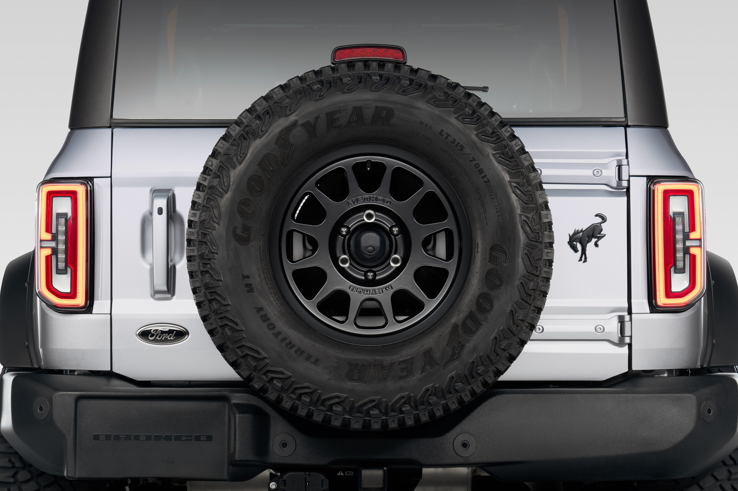 Yes, help protect your Bronco from tire failure with a carrier sized for the recommended 35-inch Goodyear Territory RT 315/70R17 tires. The rear-mounted spare tire carrier maintains proper weight distribution while keeping the spare easily accessible.