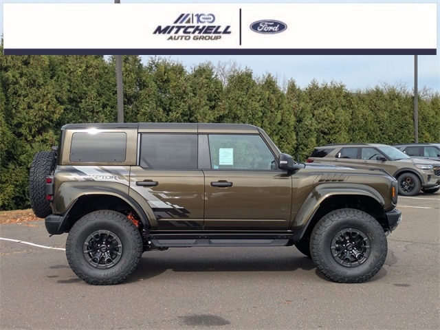 ** - LOCATED AT MITCHELL SELIG FORD IN WINDSOR, CT AT 801 BLOOMFIELD AVE --- RIGHT OFF EXIT 37 VIA ROUTE 91 !!! -- CONTACT US TODAY AT 860-688-3651 OR ONLINE AT MitchellSeligFord.com !!!, ** - ALL ONLINE PRICING INCLUDES ALL APPLICABLE REBATES AND MUST FINANCE WITH FORD MOTOR CREDIT TO RECEIVE ONLINE PRICE AS THERE ARE REBATES THAT REQUIRE FINANCING WITH FORD !!, Alloy wheels, Auto High-beam Headlights, Automatic temperature control, Body Color-Painted Hard Top, Bronco-Branded Console Cupholder, Code Orange Accent Seat Belts, Connected Navigation, Convertible roof lining, Equipment Group 374A Lux Package, Exterior Parking Camera Rear, Ford Integrated Tether System (FITS) Accessory Pkg, Front dual zone A/C, Front fog lights, Garage door transmitter, Hard Top Sound Deadening Headliner, Heated door mirrors, Heated front seats, Heated steering wheel, Interior Carbon Fiber Pack, Navigation system: Connected Navigation, Power door mirrors, Power windows, Radio: B&O Sound System by Bang & Olufsen, Raptor Graphic, Rear-Window Defroster & Washer, SiriusXM w/360L, SYNC 4, Wheel Lock Kit (DIO), Wheels: 17" Black High Gloss-Painted Aluminum.