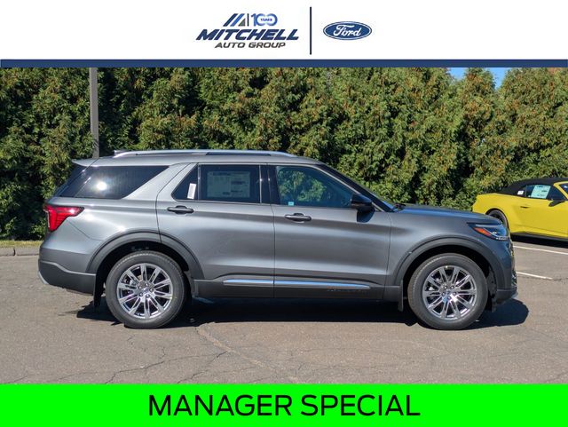 4WD, ** - LOCATED AT MITCHELL SELIG FORD IN WINDSOR, CT AT 801 BLOOMFIELD AVE --- RIGHT OFF EXIT 37 VIA ROUTE 91 !!! -- CONTACT US TODAY AT 860-688-3651 OR ONLINE AT MitchellSeligFord.com !!!, ** - ALL ONLINE PRICING INCLUDES ALL APPLICABLE REBATES AND MUST FINANCE WITH FORD MOTOR CREDIT TO RECEIVE ONLINE PRICE AS THERE ARE REBATES THAT REQUIRE FINANCING WITH FORD !!, 14 Speakers, Alloy wheels, AM/FM radio: SiriusXM with 360L, Apple CarPlay/Android Auto, Auto High-beam Headlights, Automatic temperature control, Equipment Group 600A Standard Package, Exterior Parking Camera Rear, Front dual zone A/C, Front fog lights, Heated door mirrors, Heated front seats, Heated rear seats, Heated steering wheel, Leather steering wheel, Memory seat, Navigation System, Power door mirrors, Power driver seat, Power Liftgate, Power moonroof, Power passenger seat, Power windows, Radio: B&O Sound System by Bang & Olufsen w/HD, Rain sensing wipers, Speed-Sensitive Wipers, Splash Guards, Ventilated front seats, Wheels: 20" Luster Nickel-Painted Aluminum. Some customers may not qualify for all incentives listed, please contact dealer for details, Price includes: $6000 - Model Year Closeout Bonus Cash - Explorer. Exp. 03/31/2026