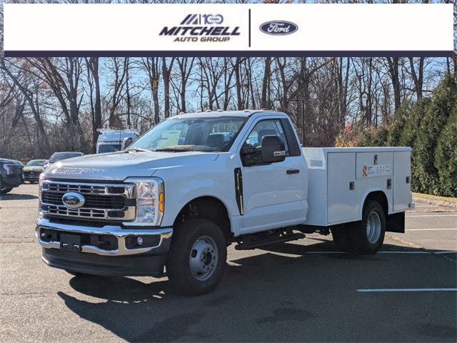 4WD, ** - LOCATED AT MITCHELL SELIG FORD IN WINDSOR, CT AT 801 BLOOMFIELD AVE --- RIGHT OFF EXIT 37 VIA ROUTE 91 !!! -- CONTACT US TODAY AT 860-688-3651 OR ONLINE AT MitchellSeligFord.com !!!, ** - ALL ONLINE PRICING INCLUDES ALL APPLICABLE REBATES AND MUST FINANCE WITH FORD MOTOR CREDIT TO RECEIVE ONLINE PRICE AS THERE ARE REBATES THAT REQUIRE FINANCING WITH FORD !!, *** -- PRICING INCLUDES 9' READING CLASSIC II SERVICE BODY W/ LATCHMATIC & AUTO COMPARTMENT LIGHTS & LOCKS AS PICTURED !!!!!, 410 Amp Dual Alternators, ABS brakes, Bright Grille, Chrome Front Bumper, Compass, Dual 68 AH/65 AGM Battery, Dual rear wheels, Exterior Backup Alarm (Pre-Installed), Ford Connectivity Package (1-Year Included), Fully automatic headlights, GVWR: 14,000 lb Payload Package, Halogen Fog Lamps, Heated door mirrors, Illuminated entry, Internet access capable: 5G Modem - Ford Connectivity Package, Limited Slip w/4.30 Axle Ratio, Low tire pressure warning, Order Code 640A, Platform Running Boards, Power door mirrors, Power steering, Pro Power Onboard - 400W Outlet, Rear View Camera & Prep Kit, Remote keyless entry, Remote Start, Snow Plow Prep Package, SYNC 4 Communication & Entertainment System, Traction control, Trailer Brake Controller, Vehicle Integration System 2.0, XL Chrome Package.