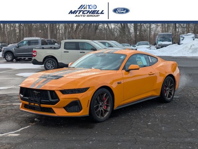 ** - LOCATED AT MITCHELL SELIG FORD IN WINDSOR, CT AT 801 BLOOMFIELD AVE --- RIGHT OFF EXIT 37 VIA ROUTE 91 !!! -- CONTACT US TODAY AT 860-688-3651 OR ONLINE AT MitchellSeligFord.com !!!, ** - ALL ONLINE PRICING INCLUDES ALL APPLICABLE REBATES AND MUST FINANCE WITH FORD MOTOR CREDIT TO RECEIVE ONLINE PRICE AS THERE ARE REBATES THAT REQUIRE FINANCING WITH FORD !!, 3.55 Limited Slip Rear Axle, ABS brakes, Active Valve Performance Exhaust, Alloy wheels, Aluminum Foot Pedals, AM/FM Stereo, Auto High-beam Headlights, Automatic temperature control, B&O Sound System by Bang & Olufsen with 12 Speakers, Black Full Indoor Vehicle Cover, Black Full Outdoor Vehicle Cover, Brembo Brake System with Performance Linings, Bronze Appearance Package, Climate Controlled Heated/Cooled Front Seats, Compass, Driver Seat Memory with 3 Settings, Electronic Stability Control, Equipment Group 401A High Package, Exterior Parking Camera Rear, Floor Mats, 1st Row, Black with City Silver GT Logo, Ford Co-Pilot360 Assist+, Front dual zone A/C, Gloss Gray/Semi-Gloss Black Stripe, HD Radio, Heated front seats, Heated steering wheel, Illuminated entry, International Orange Seat Belt, Leather-Trimmed Bucket Seats with Color Accents, Low tire pressure warning, Magnesium Framed Panoramic Curved Display, One-Year Connected Navigation, Over-the-Top Racing Stripe, Perimeter Alarm, Power door mirrors, Power driver seat, Power passenger seat, Power windows, Pre-Collision Assist with Automatic Emergency Braking, Rain sensing wipers, Rear Parking Sensors, Remote keyless entry, Remote Start System, Sinister Bronze GT 5.0 and Pony Badges, SiriusXM with 360L, Speed-Sensitive Wipers, SYNC 4, Traction control, Ventilated front seats, Wedge Decklid Spoiler, Wheels: 19" x 8.5" Shadow Silver-Painted Aluminum. Some customers may not qualify for all incentives listed, please contact dealer for details, Price includes: $1000 - Retail Customer Cash. Exp. 03/31/2026